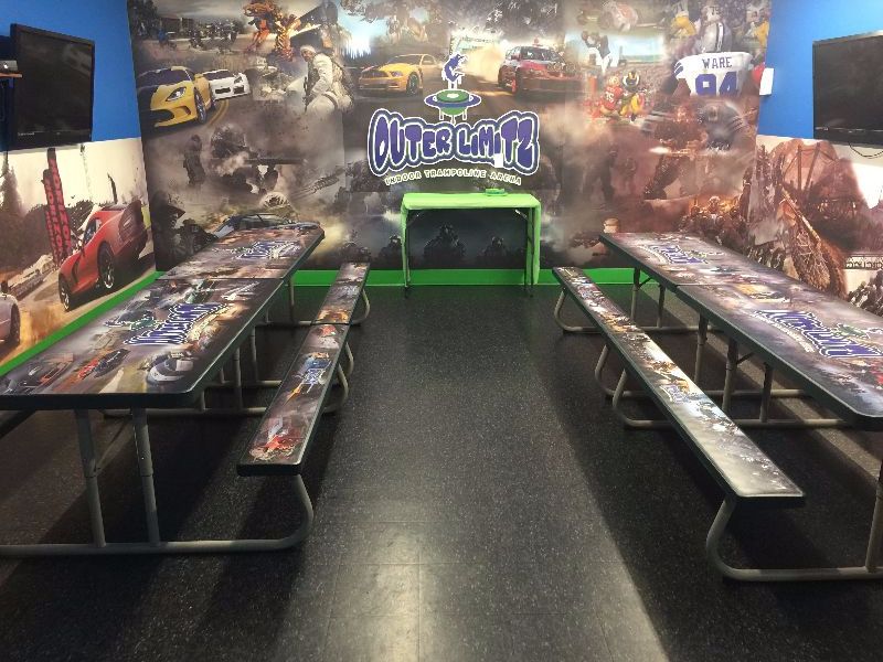 Exit party room (CANNOT go back on trampolines but can stay in arcade area even after you exit the party room)