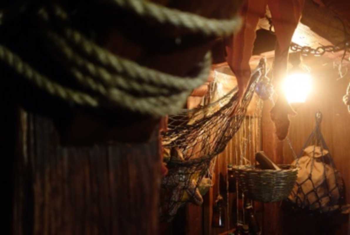 Description: Voûtes de pierre, torches et instruments de torture.